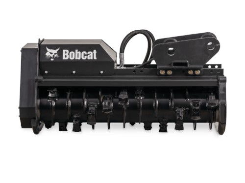 The split-ring rotor is designed to limit the knife tools' engagement while maintaining higher rotor rpms for efficient mulching of trees and heavy brush. The rotor design helps prevent the mulcher from slowing or bogging down during material engagement, and it leaves behind a bed of consistent mulch.