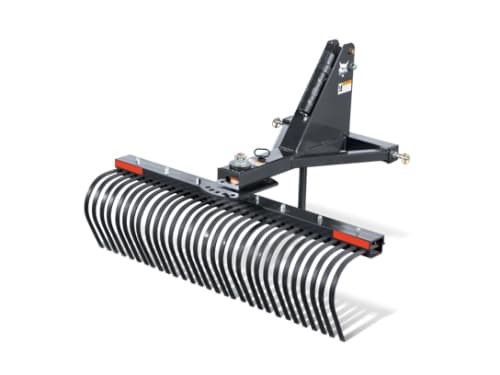 The 3-point rake rotates a full 360 degrees, with five forward and five reverse settings to be pulled or pushed.
